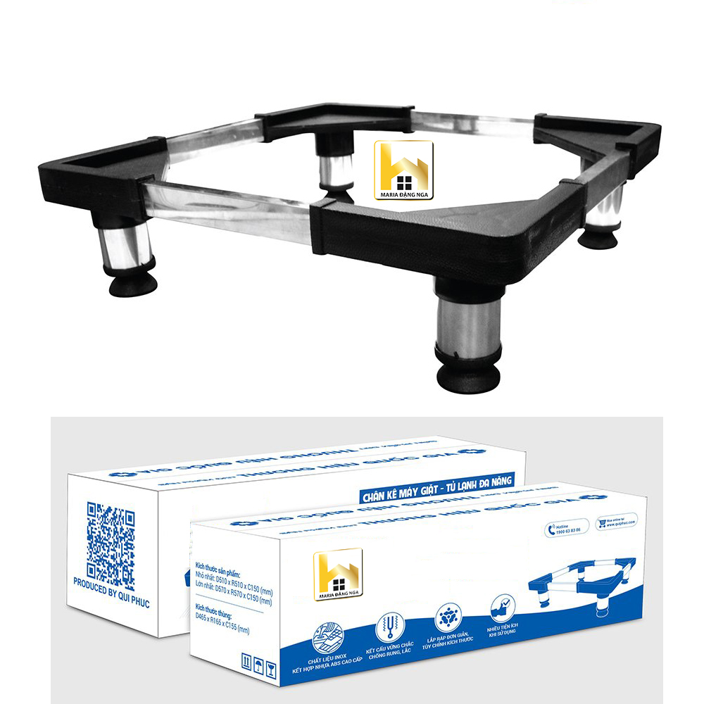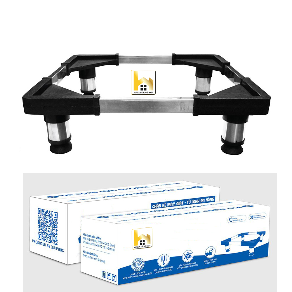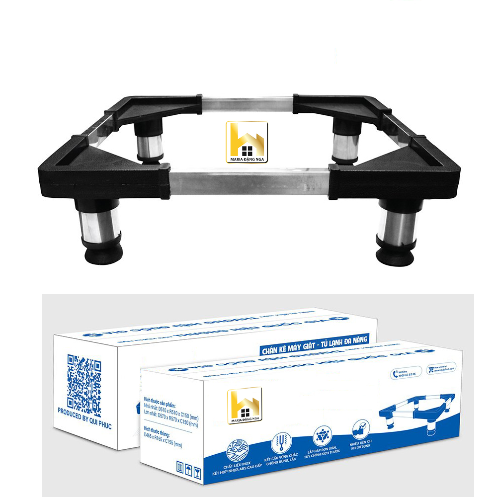 Chân đỡ máy giặt, tủ lạnh,chân Kệ Tủ Lạnh, Máy Giặt, Máy Lọc Nước Đa Năng,Khung Inox Đế Nhựa Chống Rung Chất liệu: Inox + Nhựa PP Kích thước: + Nhỏ nhất: 510 x 510 x 150