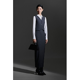Chân váy logo fabric xám  Chân Váy Công Sở New Design Thiết Kê  Dáng Váy Xếp Ly Dài Qua Gối Ôm Body , Phối Nút Kiểu Mới, Vải Tốt Co Giãn CV0073