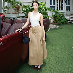 CHI TIẾT SẢN PHẨM - Sản phẩm : Chân váy dài cá tính basic màu tối giản dễ phối đồ thích hợp mùa hè Davia Miều Est.2013 - Chất liệu : Kaki - Màu sắc