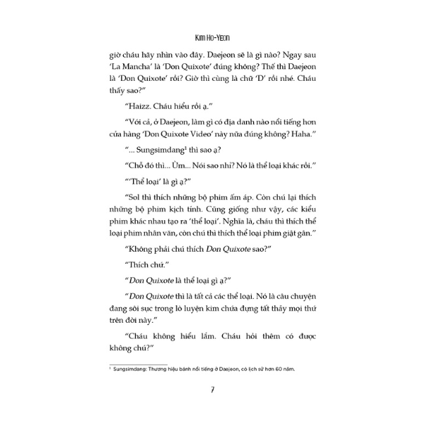 Giọng văn của Kim Ho-yeon ấm áp, dịu dàng. Câu chữ không quá cầu kỳ, nhưng giàu hình ảnh, giàu chất điện ảnh. Đặc biệt, tác giả rất khéo khi kết hợp chất liệu phương Tây (Don Quixote) vào bối cảnh Hàn Quốc đương đại. Sự pha trộn này vừa lạ vừa quen, khiến câu chuyện có chiều sâu văn hóa mà vẫn gần gũi với độc giả toàn cầu.