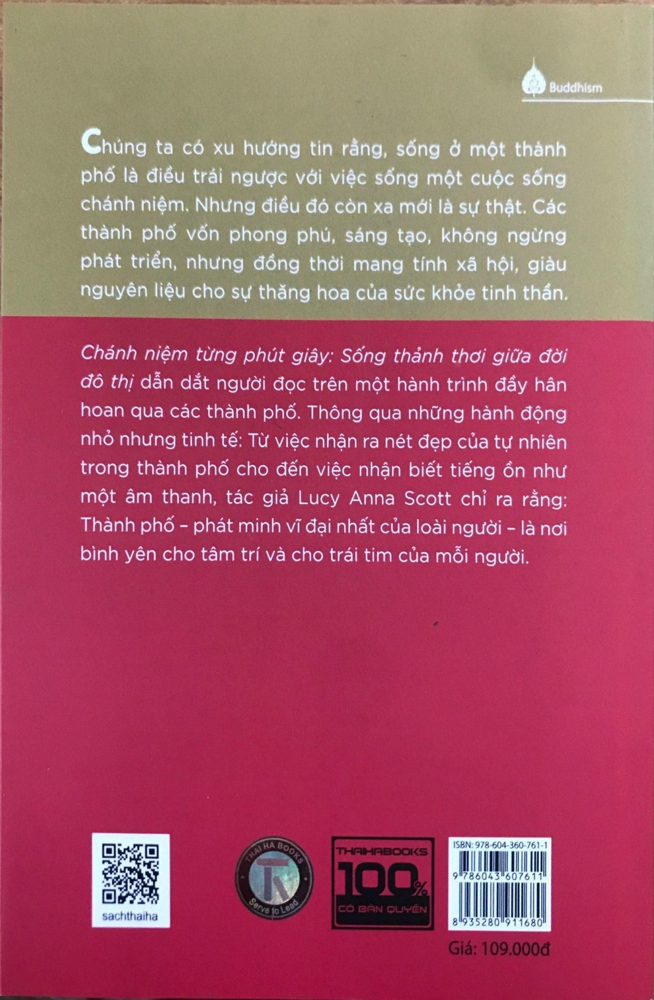 Đây là cuốn sách nằm trong bộ “Chánh niệm từng phút giây”. Cuốn sách gợi mở những suy nghĩ mới về cuộc sống thành thị – như một cách tiếp cận có “chánh niệm” hơn với cuộc sống. Cuộc sống chánh niệm đến từ việc hiểu thành phố sâu sắc hơn – khám phá những tầng lớp của nó, đào sâu bên dưới sự ồn ào, sương mù, và các đám đông.