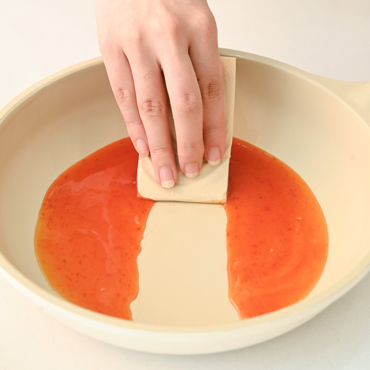 Bề mặt gốm sáng bóng, chống bám dầu mỡ và chống trầy xước, giúp vệ sinh dễ dàng chỉ với nước rửa chén pha loãng và miếng bọt biển mềm.