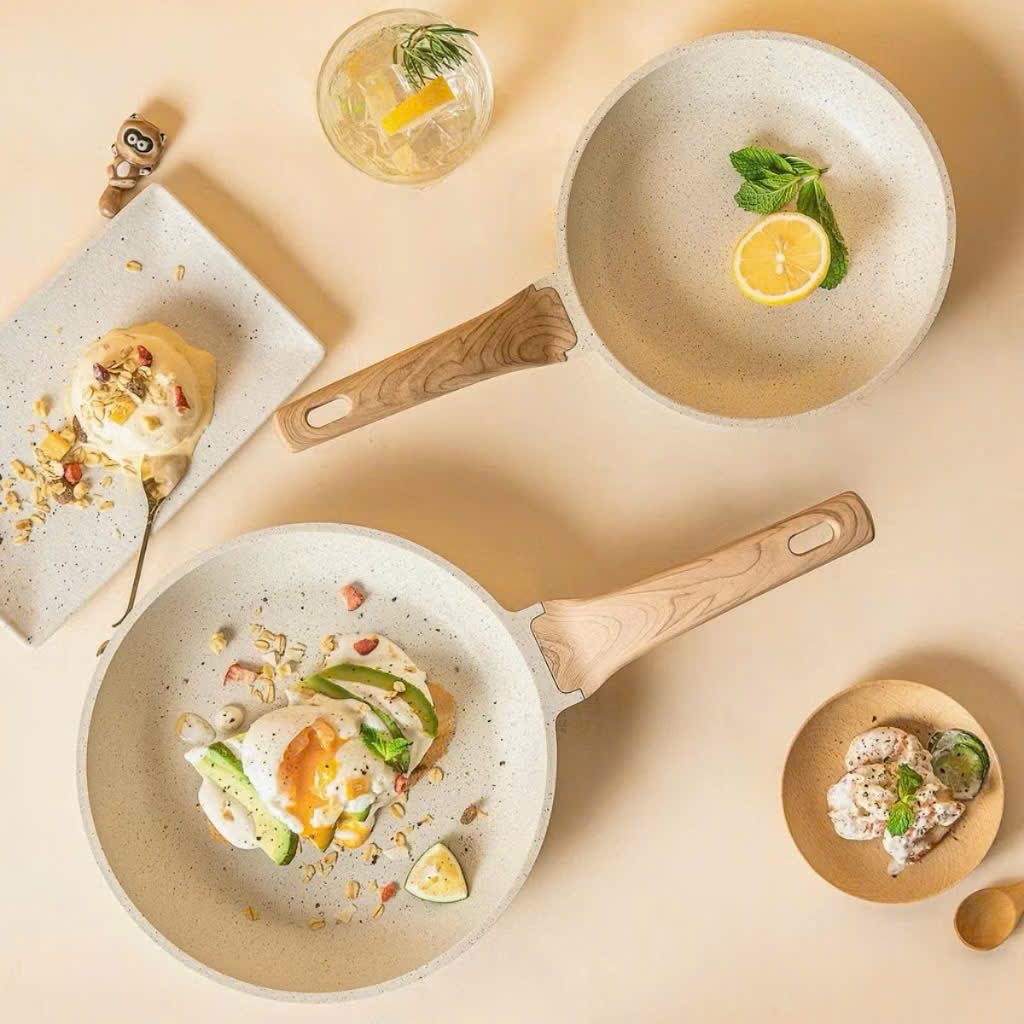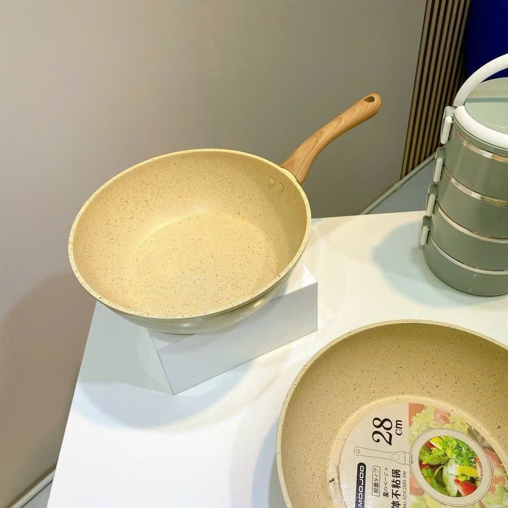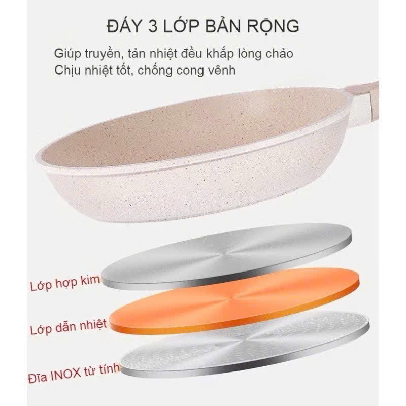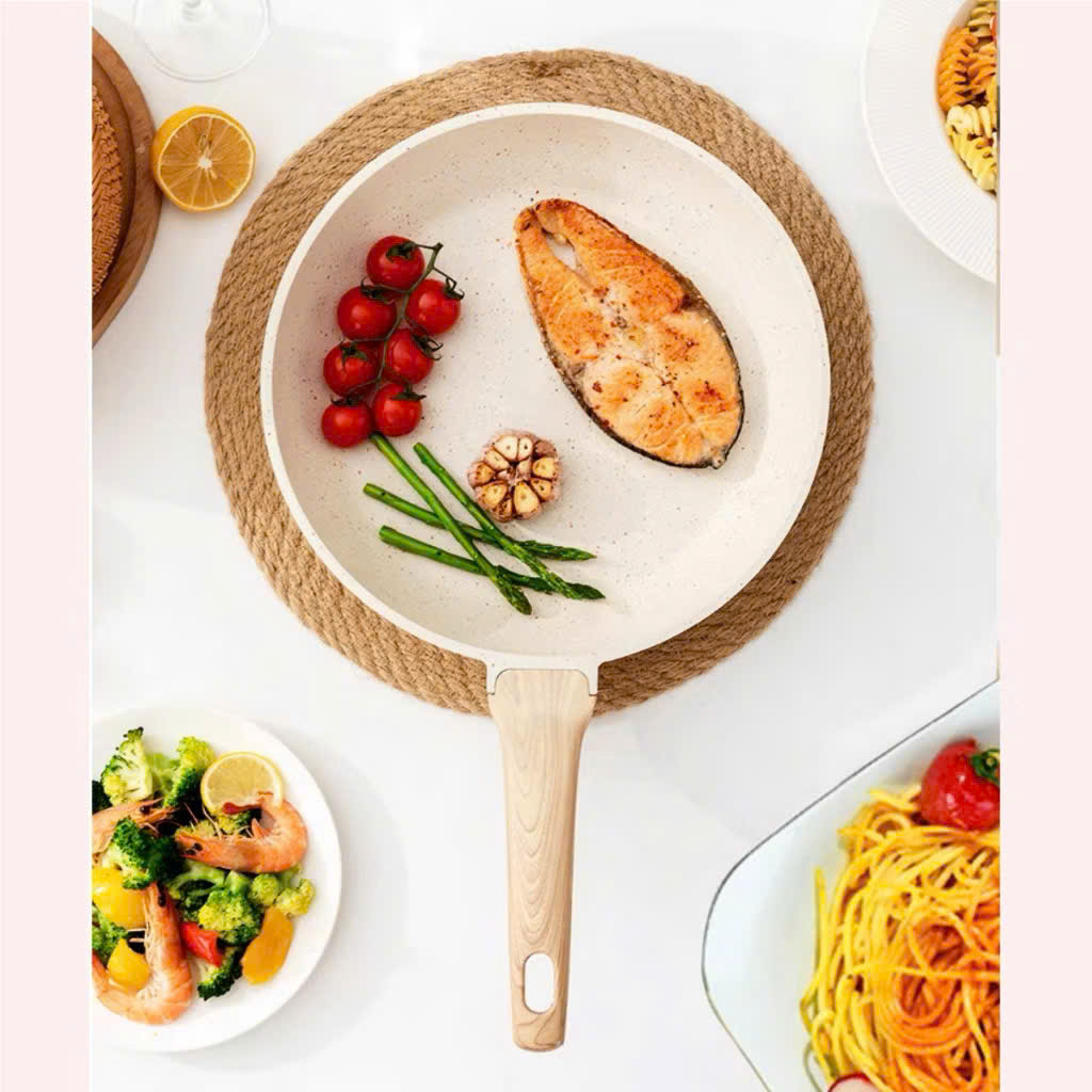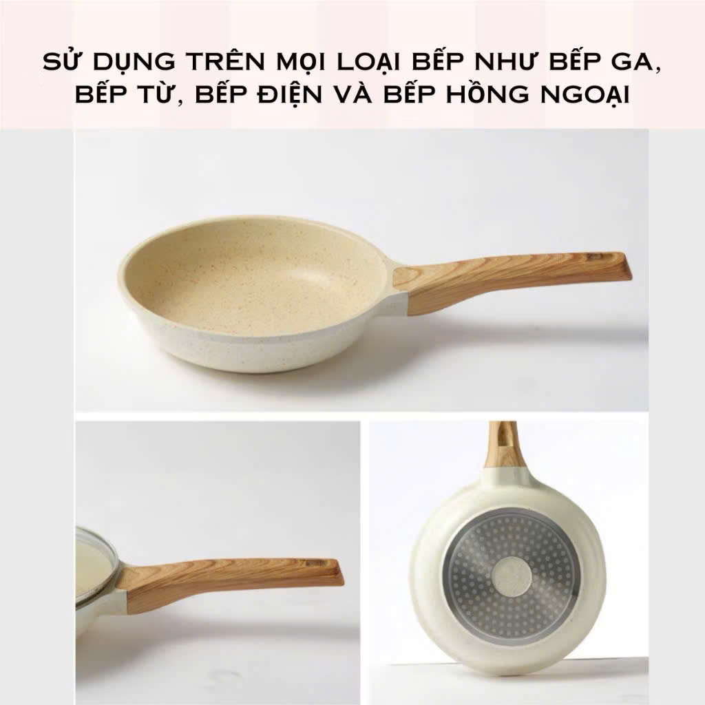 Chảo Chống Dính Bếp Từ Vân Đá Kiểu Nhật 20-30cm, Đáy Từ Ceramic Cán Gỗ [Hàng Loại Một]