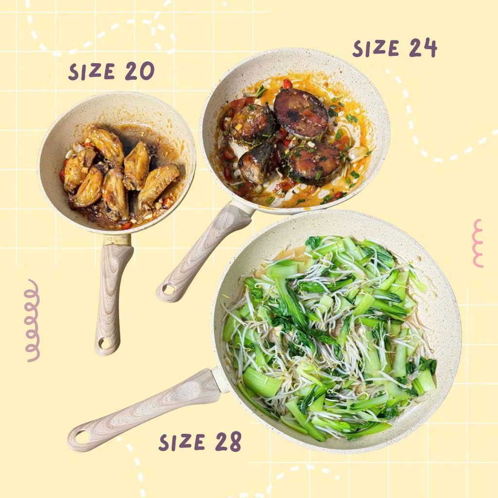 Kích Thước Đa Dạng: Sản phẩm có nhiều kích thước khác nhau: 20cm, 24cm, 26cm, 28cm, 30cm. Bạn có thể chọn kích thước phù hợp với nhu cầu sử dụng của gia đình hoặc mục đích nấu nướng.