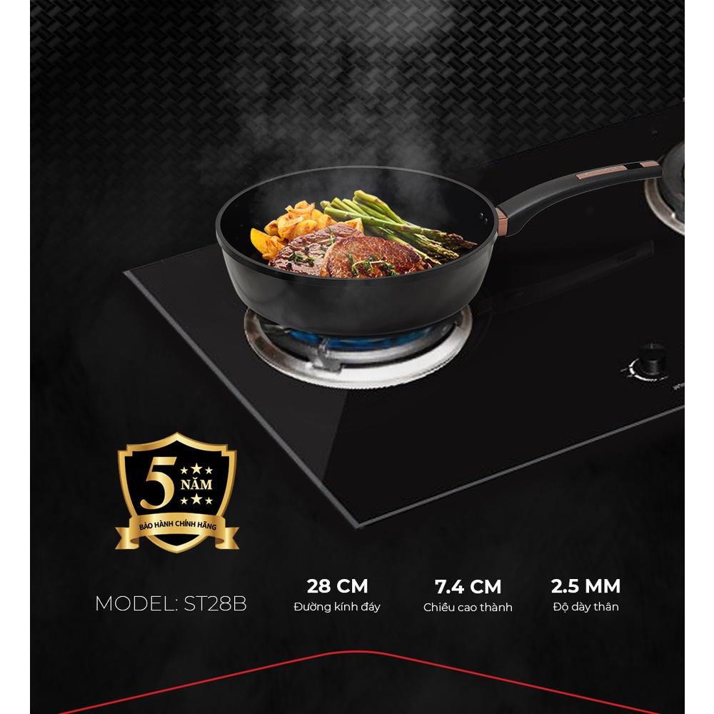 THIẾT KẾ SANG TRỌNG, TINH TẾ - Chất liệu cao cấp, kiểu dáng bắt mắt Chảo chống dính Ultra titanium Sunhouse ST28B được thiết kế đẹp mắt với mặt ngoài màu đen nhũ sang trọng