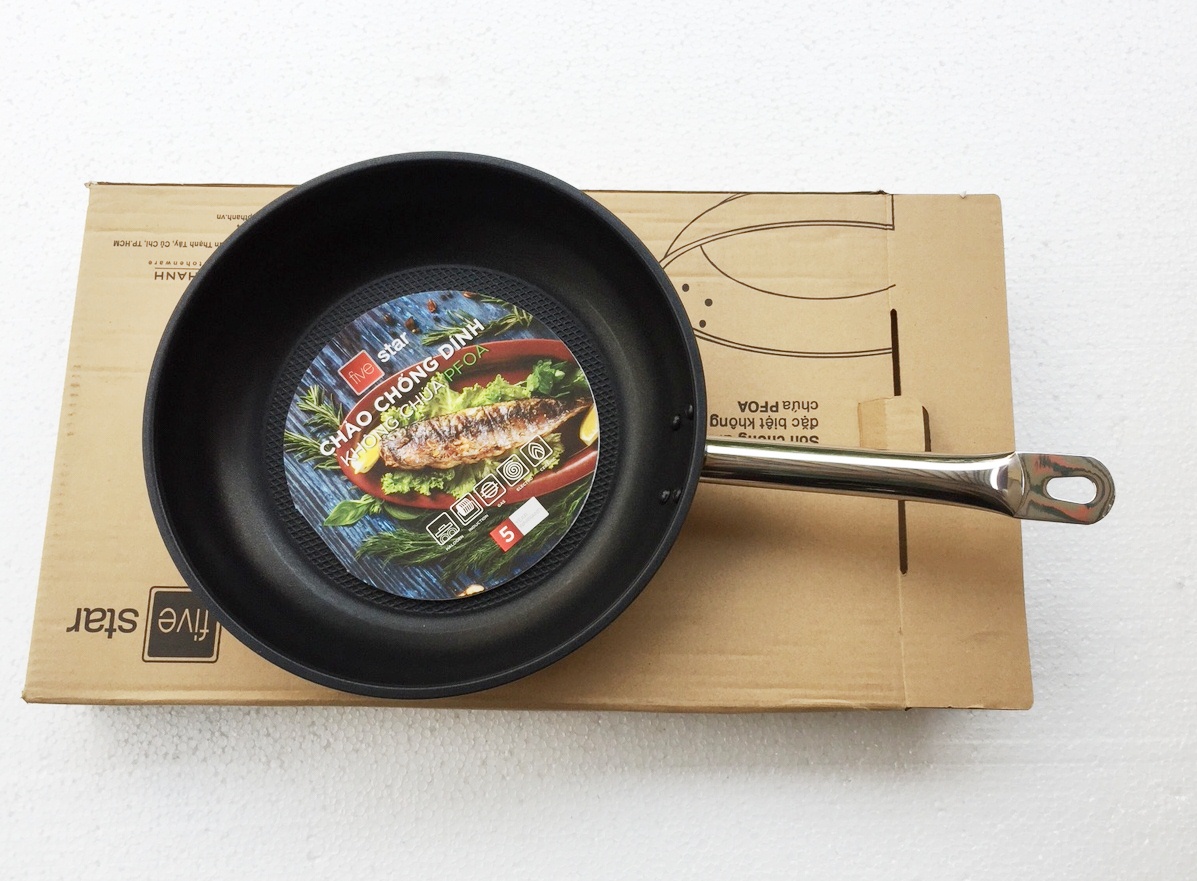 Chảo chống dính Five Star sử dụng chất liệu inox 304 cao cấp, giúp sản phẩm luôn giữ được độ bền đẹp, sáng bóng như mới.