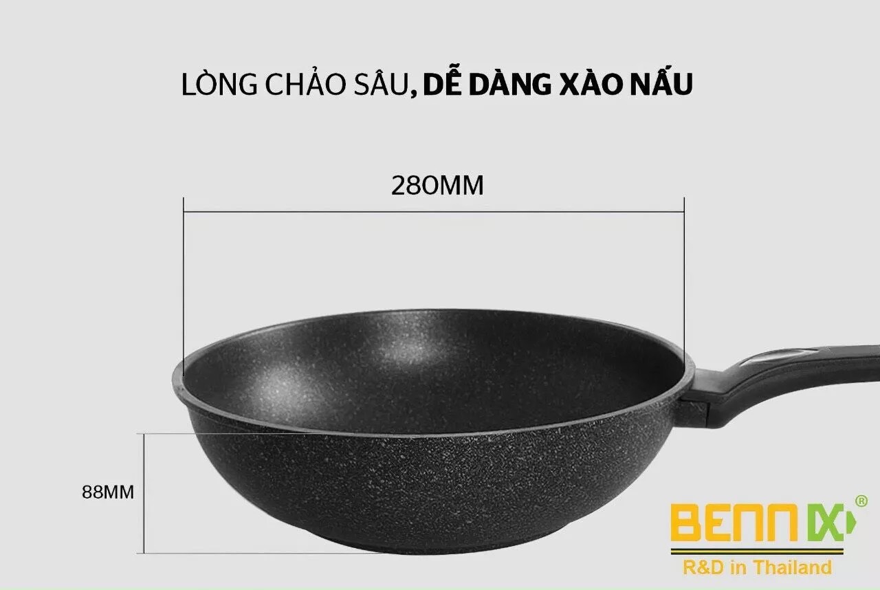 Chảo đá cao thành, chống dính BENNIX nhôm nguyên khối cao cấp đáy từ full size - Zalo 0816 505 655
