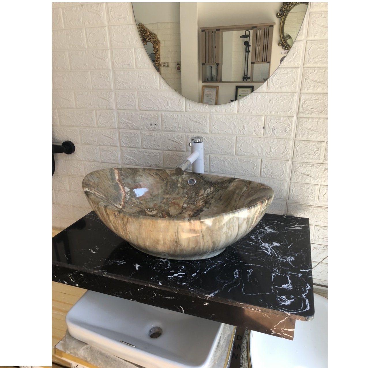 CHẬU ELIP VÂN ĐÁ VÀNG NÂU GRVL 0680 là mẫu thiết bị vệ sinh GROVES có kiểu dáng đẹp với thiết kế hình elip thu hút, men sứ chống bám bẩn, lòng chậu sâu và