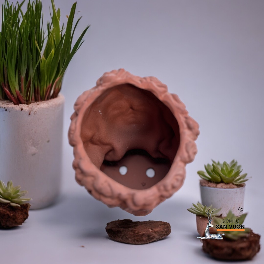 ✨Chậu Gốm Đất Nung Hình Cô Gái Anna Tóc Xoăn