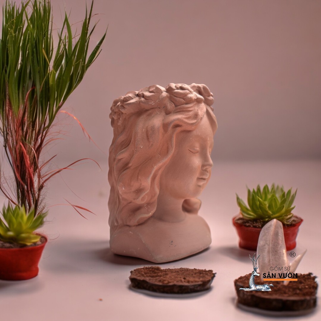- Tên sản phẩm : Chậu Gốm Đất Nung Hình Cô Gái Anna Tóc Xoăn