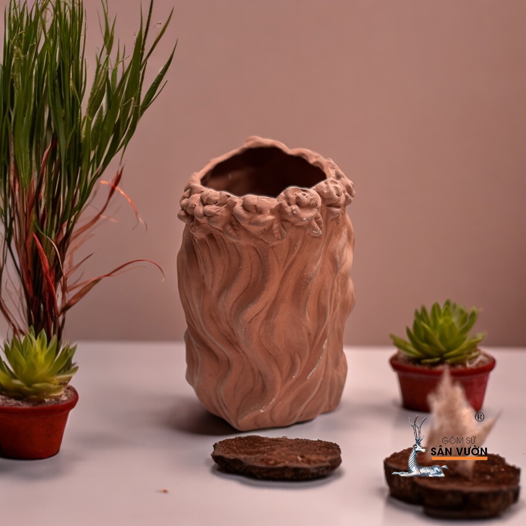 *THÔNG TIN SẢN PHẨM: + Tên sản phẩm : Chậu Gốm Đất Nung Hình Gốc Cây Ngang + Màu sắc: Đất Nung, + Kích thước: Dài 40cm X Rộng 20cm X Cao 25cm + Có