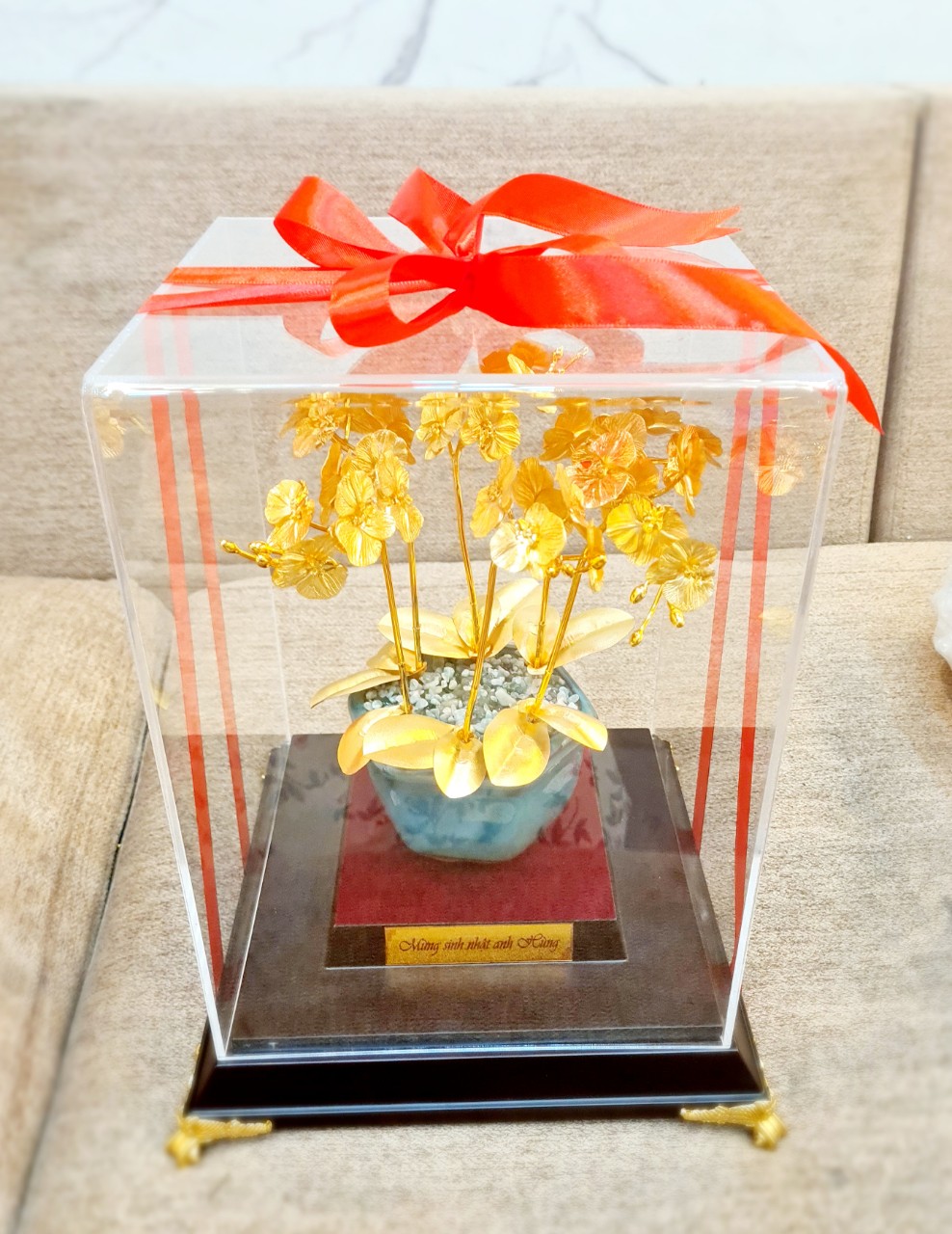 Chậu lan 2 cành dát vàng 24k - Quà tặng sang trọng, ý nghĩa