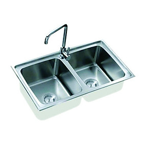 Inox 304 Kích thước chậu: 820x450mmx230mm Kích thước 2 hố: 370x350x230mm KT khoét đá: 790x425mm Kích thước 2 hố: 750mm