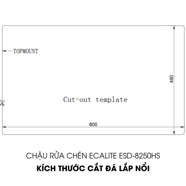 Kích thước: 860 x 480 x 230 mm Khoét lỗ: 840 x 460 mm