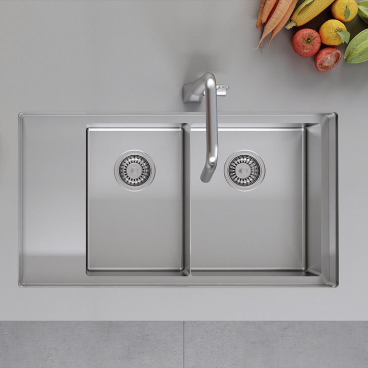 - Cấu tạo 2 hố với chất liệu hoàn toàn bằng Inox có độ sáng bóng, bền bỉ cao.  - Chất liệu làm chậu không chứa các hóa chất độc hại, rất an toàn đối với