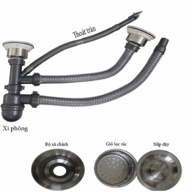 Chất liệu: Inox 304 Màu sắc" Inox mờ Bảo hành 24 tháng Chế tạo khuôn ép nguyên tấm 100% Bộ lọc rác inox 304, xi phông nhựa PP cao cấp Không tiếp xúc trực tiếp