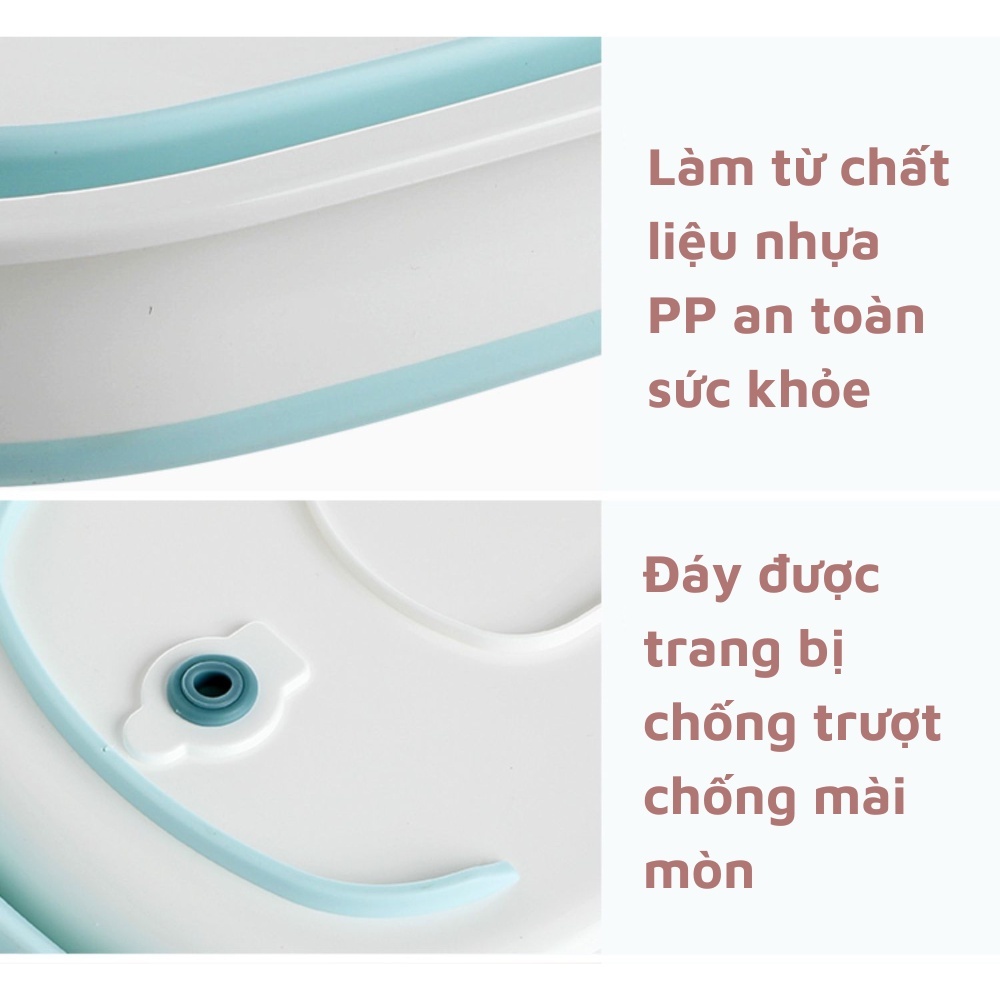 Thau tắm gấp gọn cho bé Đặc điểm sản phẩm - Thau tắm được làm từ chất liệu nhựa PP cao cấp, dày dặn, không chứa chất độc hại an toàn cho bé khi sử