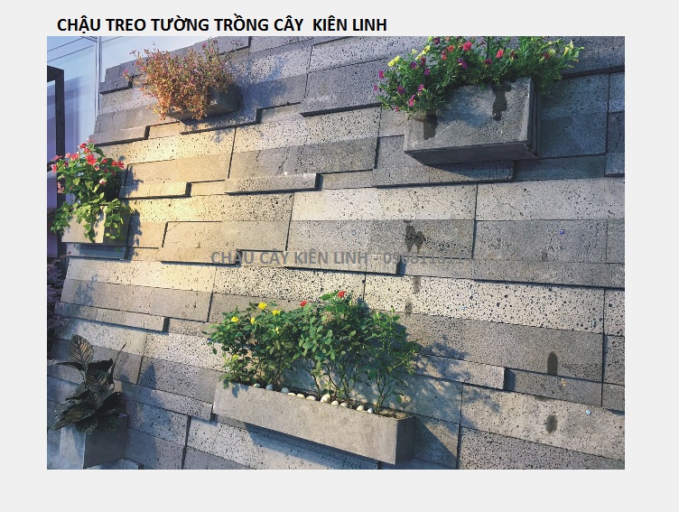 • Chậu treo tường ban công, giếng trời trồng các loại cây hoa thay đổi bức tường khô khan trở nên sinh động hơn. Chậu chữ nhật đủ đất trồng cho các loại cây xanh và dây leo sinh trưởng tốt như trong môi trường tự nhiên