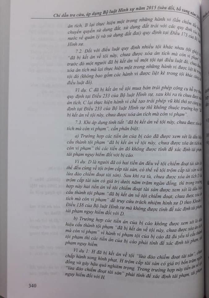 Để giúp bạn đọc, đặc biệt là Học viên, Điều tra viên, Kiểm sát viên, Thẩm phán, Hội thẩm, Luật sư và những người tham gia tố tụng tra cứu, áp dụng Luật hình sự được nhanh chống, chính xác, TS. Nguyễn Trí Tuệ và TS. Đỗ Đức Hồng Hà ( Đồng chủ biên ) cùng nhóm tác giả đã thống kê, tập hợp và sắp xếp tất cả các văn bản giải thích hướng dẫn áp dụng Bộ luật hình sự đang có hiệu lực thi hành, cả văn bản quốc gia và văn bản quốc tế, cả văn bản quy phạm pháp luật và văn bản hướng dẫn nghiệp vụ, tương ứng với từng điều khoản, Điểm của Bộ luật Hình sự Việt Nam hiện hành trong cuốn sách" Chỉ Dẫn Tra Cứu Áp Dụng Bộ Luật Hình Sự Năm 2015 Sửa Đổi Bổ Sung Năm 2017"