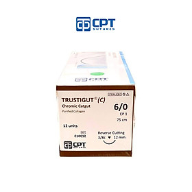 Mua tại TiktokChỉ phẫu thuật tự tiêu tan chậm CPT Trustigut (C) Chromic Catgut: size cỡ chỉ: 6/0 USP, dài 75 cm, kim tam giác 3/8c, dài 12 mm, mã hàng: C10E12. Quy cách đóng gói: 12 tép. THÀNH PHẦN: