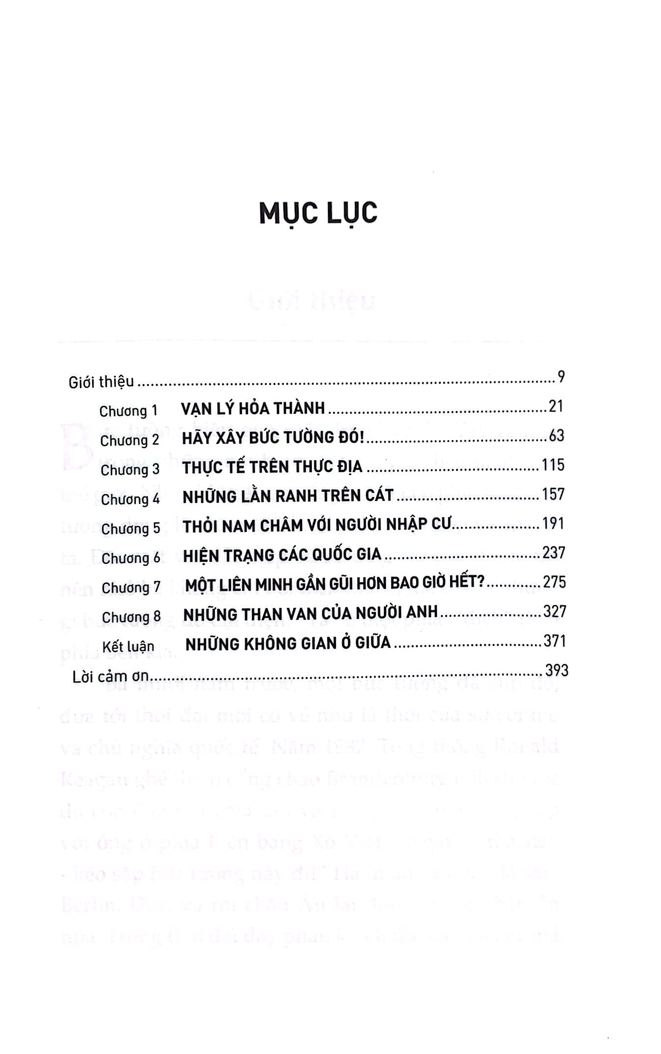 Mở đầu tác phẩm Marshall cho rằng những bức tường vật chỉ là phần “cái gì” của sự chia rẽ, không phải là phần “tại sao”. Tức là, những bức tường vật chất chỉ thể hiện sự chia rẽ giữa “cái gì” và “cái gì”, chưa cho ta lời giải thích “tại sao” lại có sự chia rẽ đó. Lời giải thích chính là sự chia rẽ trong tâm trí con người. Ông viết: