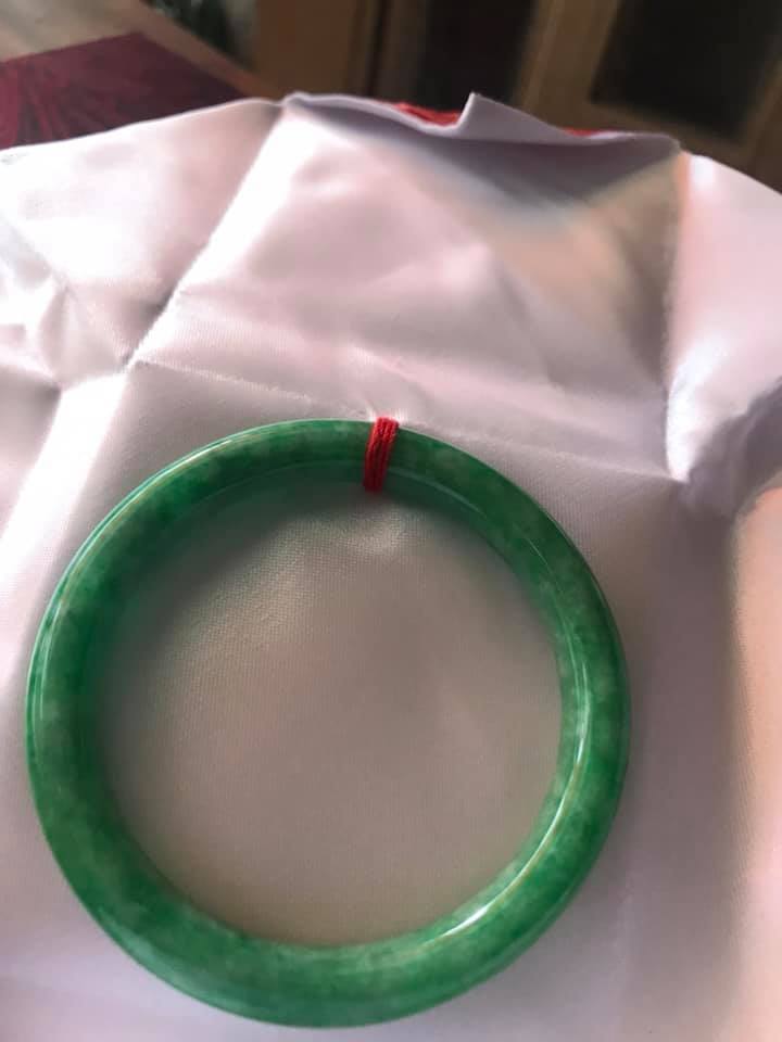 CHIẾC VÒNG ĐÁ CẨM THẠCH XANH ĐẬU A 53MM MÀU XANH BÔNG TRẮNG NỮ 51KG ĐẾN 60KG Ạ