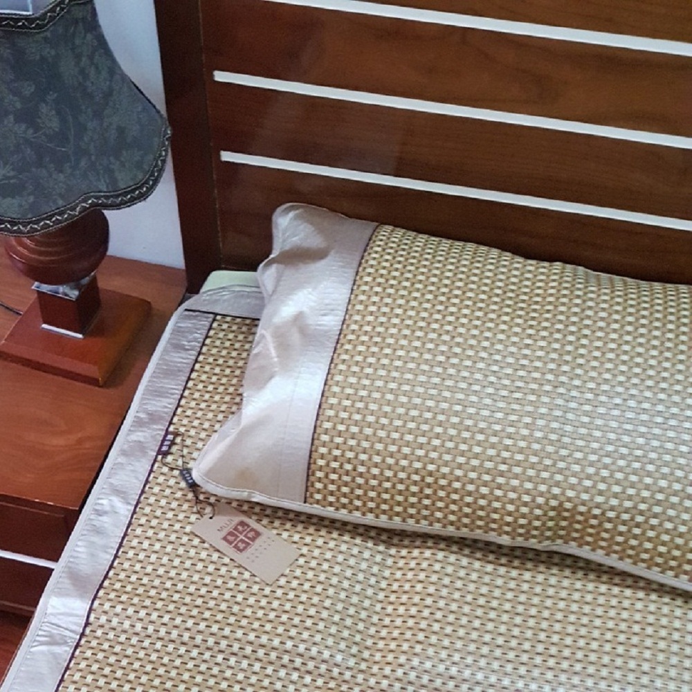 Chiếu điều hòa cao cấp xuất Nhật kích thước 1m6 x 2m nằm được 2 mặt (bao gồm túi đựng + 2 vỏ gối) Chất liệu: Mây tự nhiên – lụa Viscose, nằm được