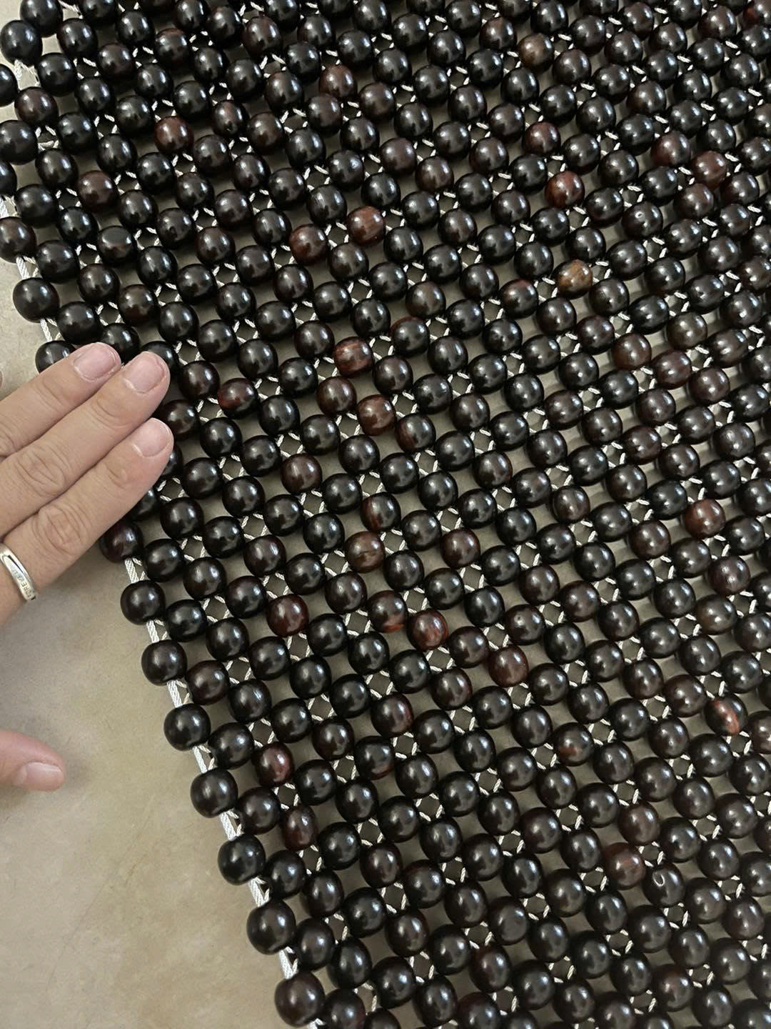 CHIẾU HẠT GỖ HƯƠNG ĐỎ CAO CẤP ( ) : - Chất liệu : 100% gỗ Hương tự nhiên - Kích thước chiếu : 2,2mx2m - Kích thước hạt : 1,2cm ( kích thước hạt