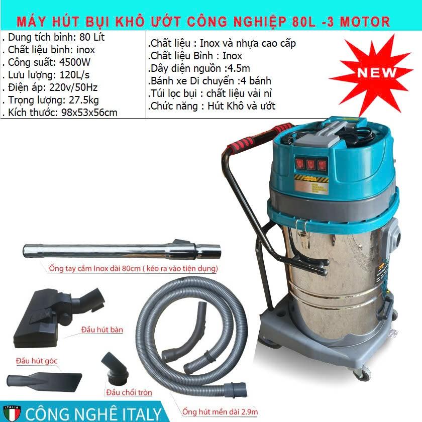- DUNG TÍCH 80L - 3 MÔ TƠ (SIÊU KHỎE) DÙNG CHO HÚT BỤI CÔNG NGHIỆP = 4500W