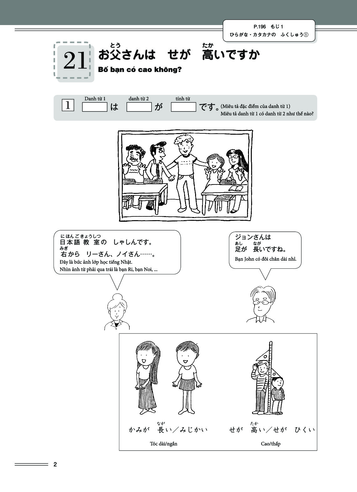- Nội dung của cuốn sách được tạo thành bởi 2 phần đó là “Các bài khóa từ 21 đến 40” và “Học chữ cái”. Phần ngữ pháp & các mẫu câu là đạo cụ quan trọng để hỗ trợ người học có thể nói, giao tiếp tốt tiếng Nhật.
