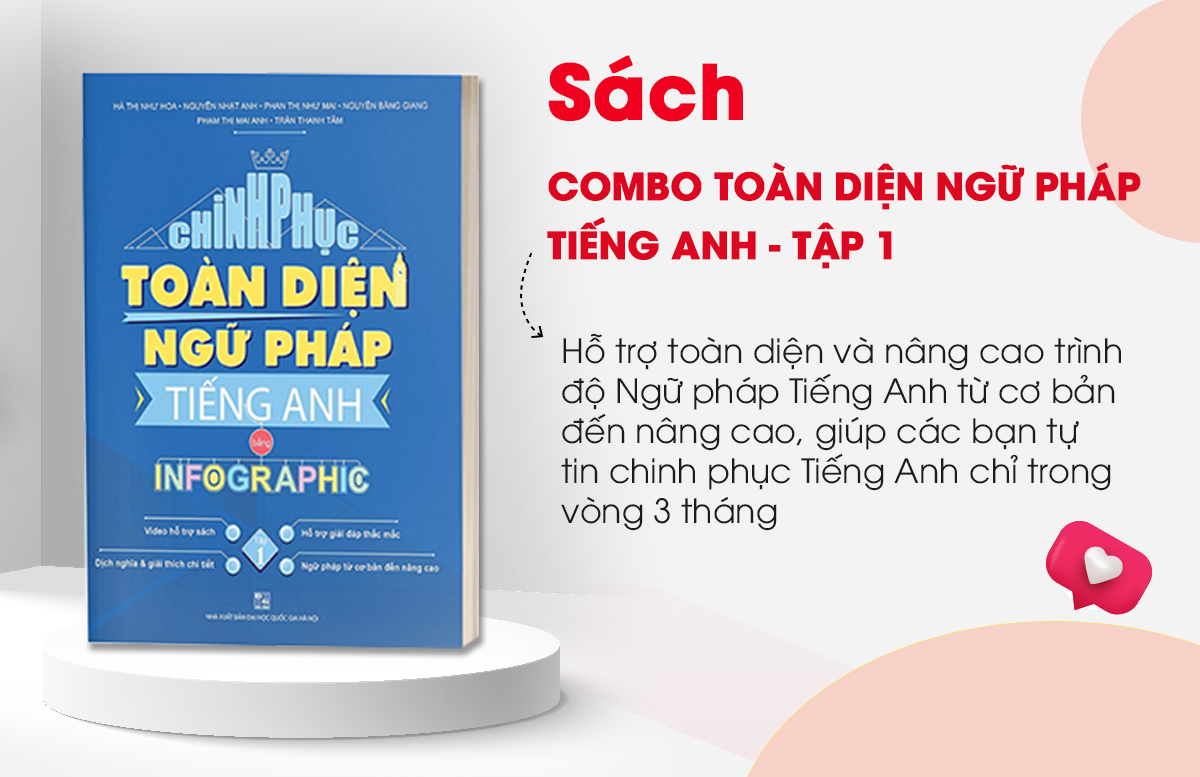 Mua tại TiktokChinh phục toàn diện Ngữ pháp tiếng Anh bằng Infographic - Tập 1 Bí quyết giúp bạn hết sợ, hết chán học tiếng Anh Tiếng Anh là ngôn ngữ ngày càng phổ biến trong xã hội đang hội nhập ngày một sâu và rộng. Việc trau dồi vốn từ vựng, ngữ pháp tiếng Anh đóng vai trò cốt lõi trong việc phát triển toàn diện các kỹ năng từ nghe, nói, đến đọc, viết. Tuy nhiên, việc học tiếng Anh là rào cản không hề nhỏ đối với mọi người, đặc biệt đối với những người mất gốc, người đi làm bận rộn luôn gặp phải các vấn đề kinh điển như: