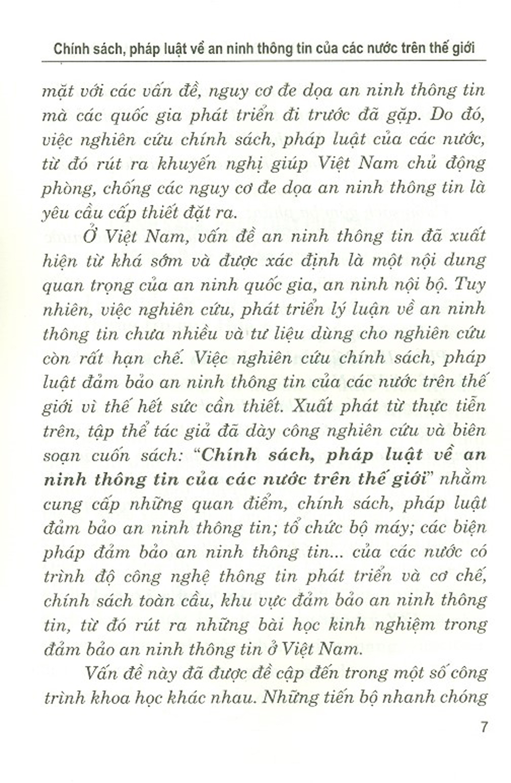 Giới thiệu những chính sách, pháp luật của nhà nước trong đảm bảo an ninh thông tin; trình bày các học thuyết an ninh thông tin và khái lược một số văn bản pháp luật đảm bảo an ninh thông tin của Liên bang Nga; khái quát bối cảnh tình hình và giá trị tham khảo đối với Việt Nam