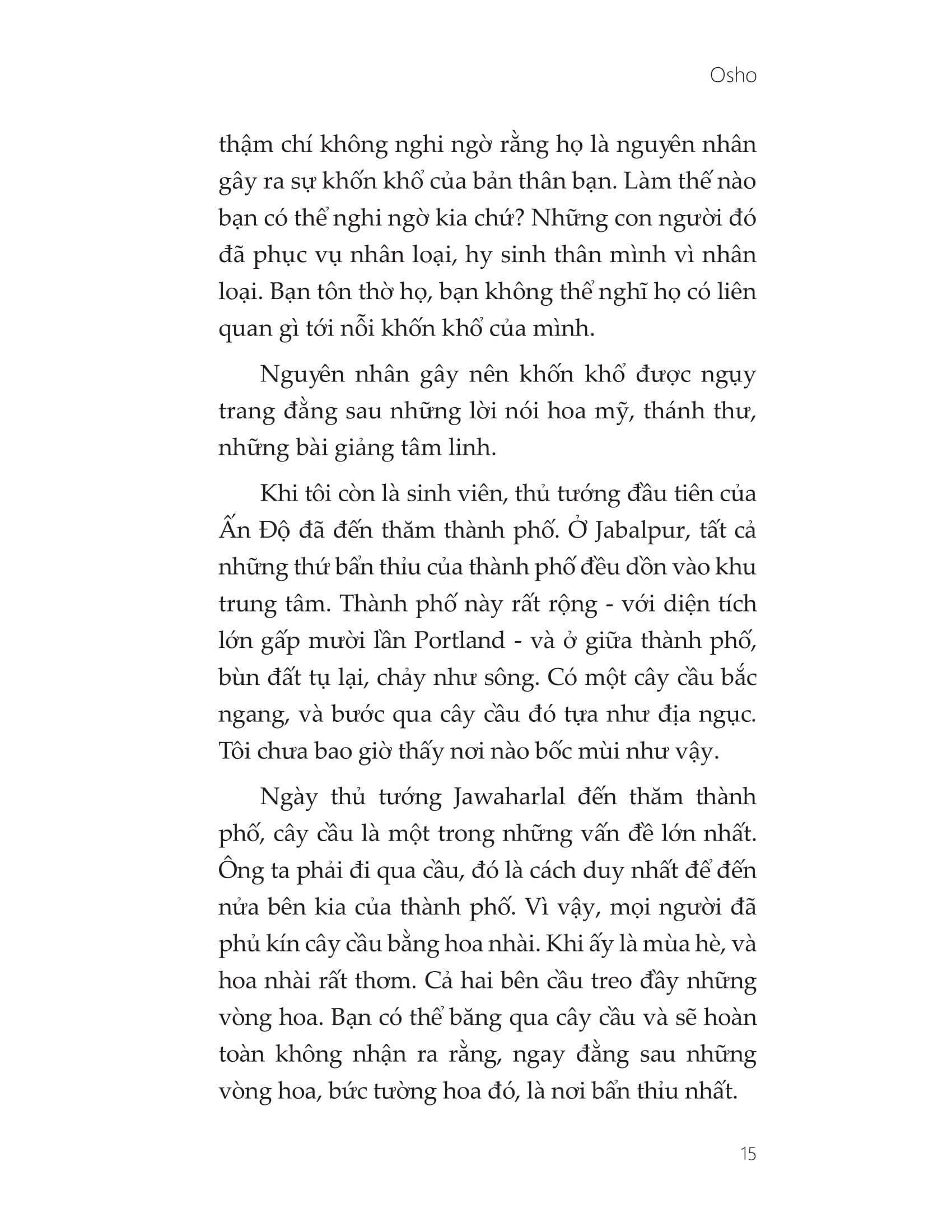 Tiết lộ của Osho về gốc rễ các nỗi đau của loài người sẽ khiến chúng ta cảm thấy không thoải mái, bởi ông buộc chúng ta đối mặt trực tiếp với những điều ta vẫn luôn lẩn tránh, cũng như khiến ta ngộ ra những nhầm tưởng đã tồn tại hàng thế kỷ trong ký ức đám đông.