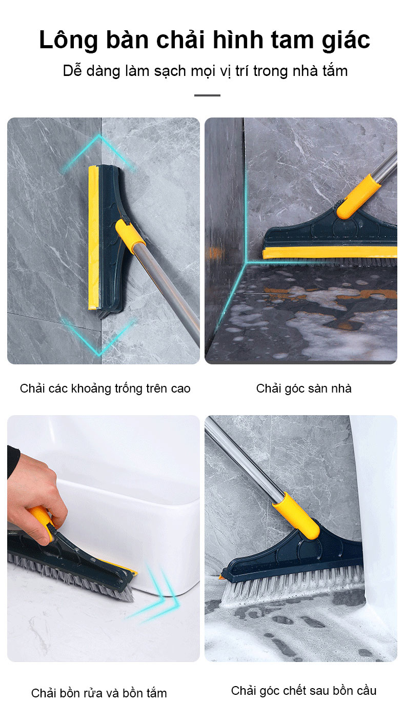 ️ Đầu chổi Hình tam giác nhọn linh hoạt gạt sạch mọi bụi bẩn trong từng ngóc ngách nhỏ nhất