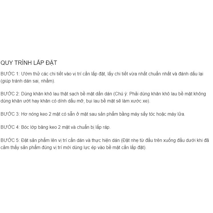 Khách hàng có thể tự lắp đặt tại nhà mà không cần tới sự trợ giúp của kĩ thuật viên cũng như không cần phải mang đến các Gara lắp đặt, chỉ cần bóc miếng dán 2 mặt, sau đó hơ nóng phần băng keo và vệ sinh sạch sẽ bề mặt cần dán rồi dán lên trên.