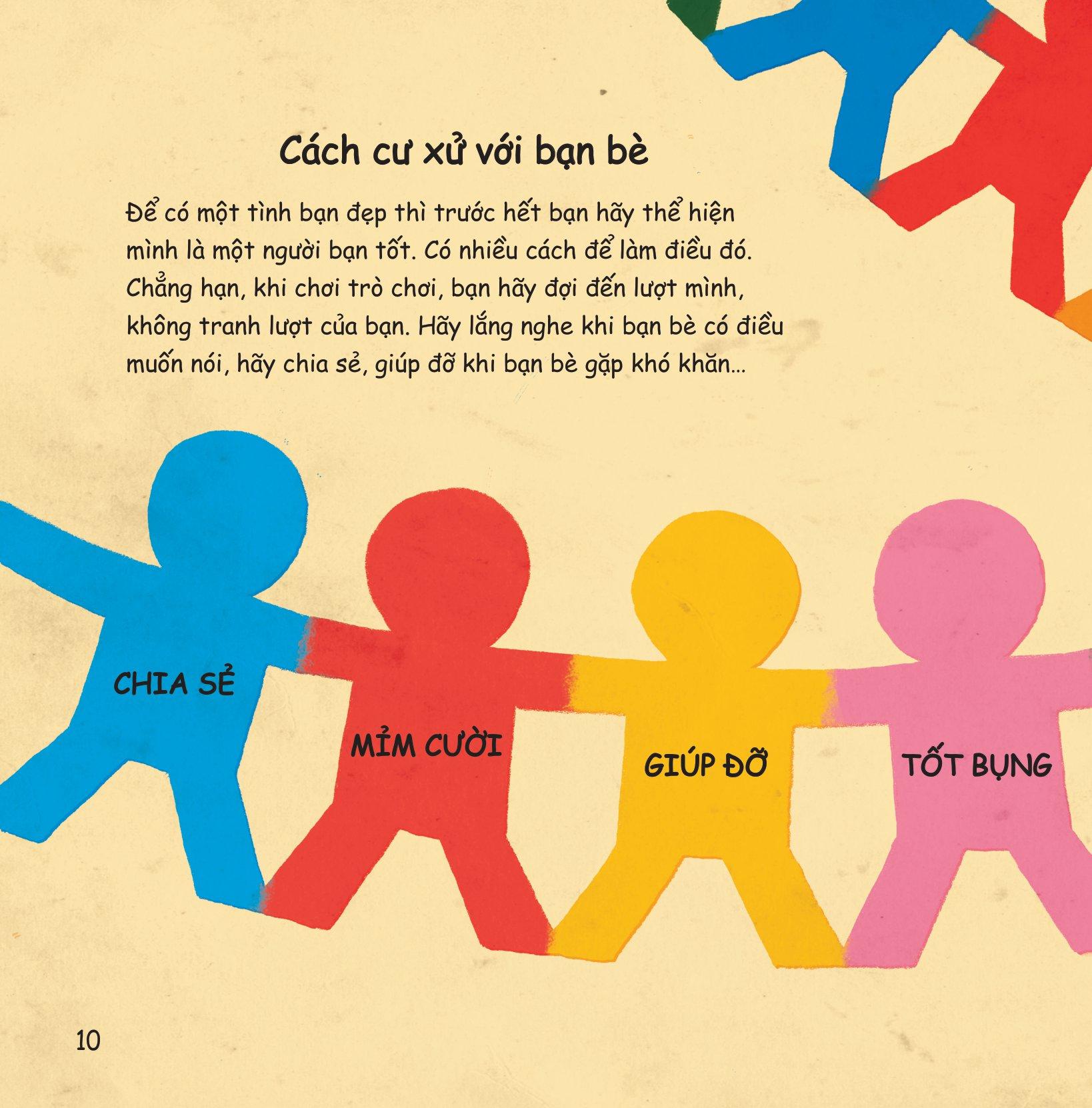 Cuốn sách “Chúng mình làm gì để Quan tâm bạn bè?” như một cẩm nang hướng dẫn trẻ biết cách kết bạn, quan tâm đến bạn bè, gỡ rối khi tình bạn bất hoà, thay đổi, khi bị bạn bắt nạt… Và còn nhiều điều bổ ích khác về tình bạn!