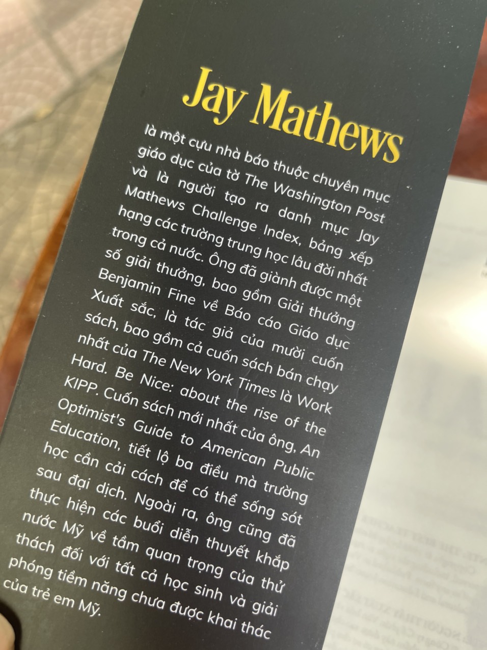 Jay Mathews tốt nghiệp Đại học Harvard, là cựu nhà báo từng làm việc tại tờ Washington Post, chuyên viết tin tức về quyền lợi của người khuyết tật và chuyên mục giáo dục. Ông là tác giả của 9 cuốn sách, trong đó có 5 cuốn về các trường trung học. Ông đã giành được một số giải thưởng trong lĩnh vực giáo dục như Upton Sinclair, Eugene Meyer, Benjamin Fine Education Awards và Education Writers Associatlon Award…