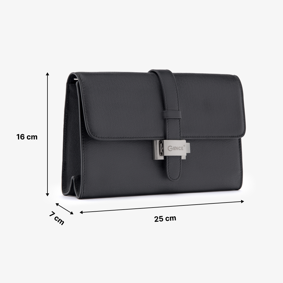 - Xuất sứ: GENCE Việt Nam - Mã SP: RB03 - Sử dụng: Clutch cầm tay, đeo tay cho nam - Kích thước: 21cm (Dài) x 13cm (Cao) x 5cm(rộng) Thiết kế với form dáng cầm tay có khóa