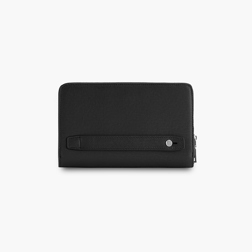 • Ví cầm tay nam Gence 2 khoá da bò Taiga đen HT21