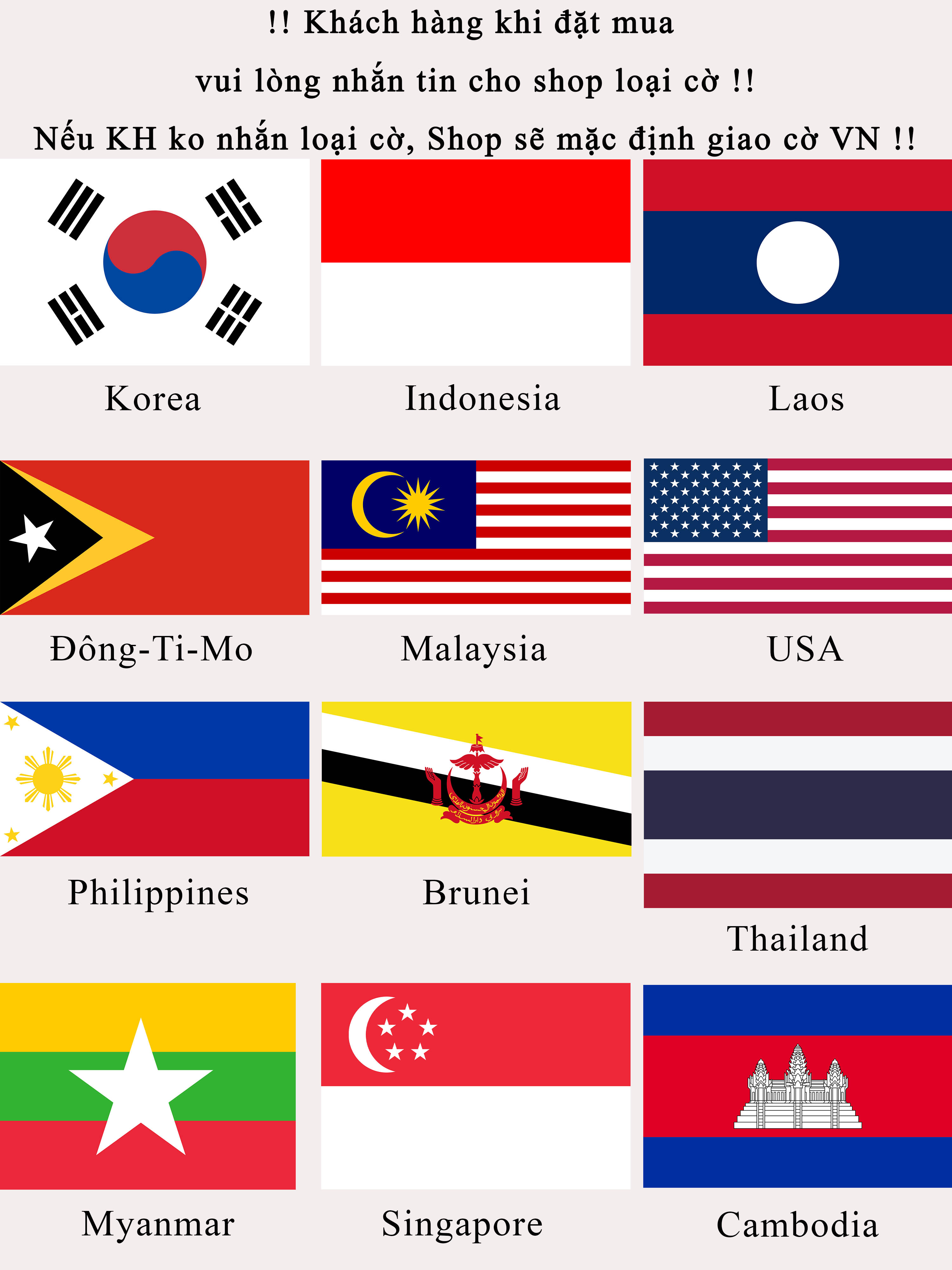 Mua tại TiktokKÍCH THƯỚC: 70x100 cm Cờ Quốc Gia, Cờ các nước. Vải cao cấp, in 2 mặt, chất liệu vải mịn màn. Cờ in 2 mặt trên 2 lớp vải may ghép vào nhau, in chuyển nhiệt mực âm vào vải không phai màu, không bong tróc. Cờ sử dụng được dưới 2 hình thức: