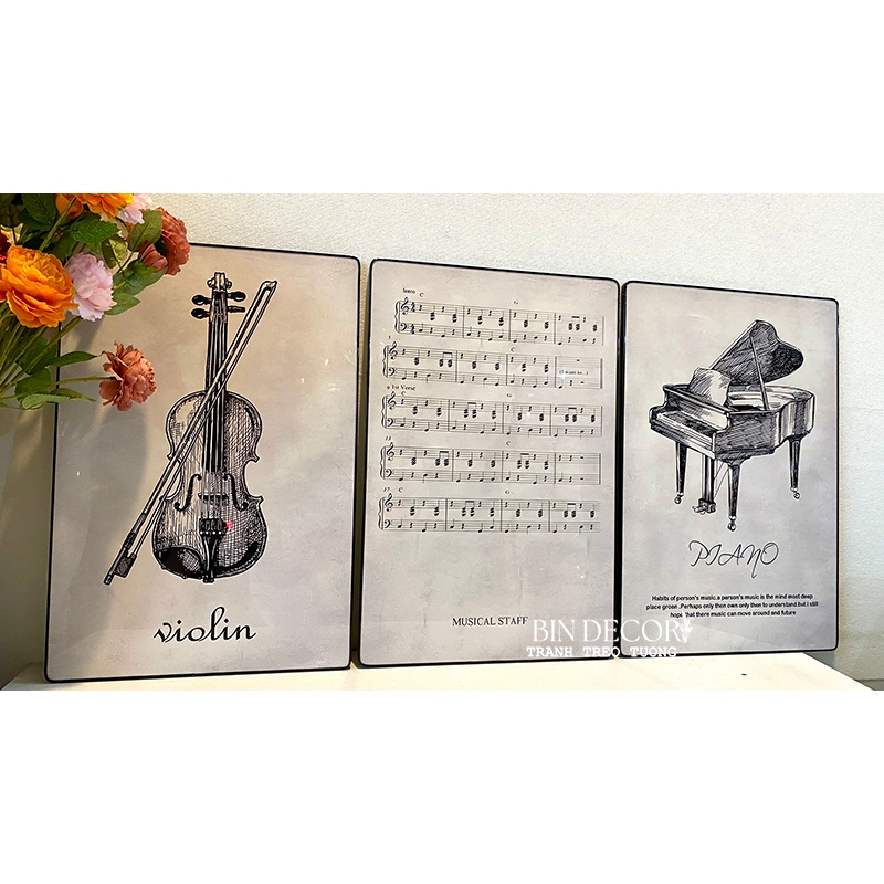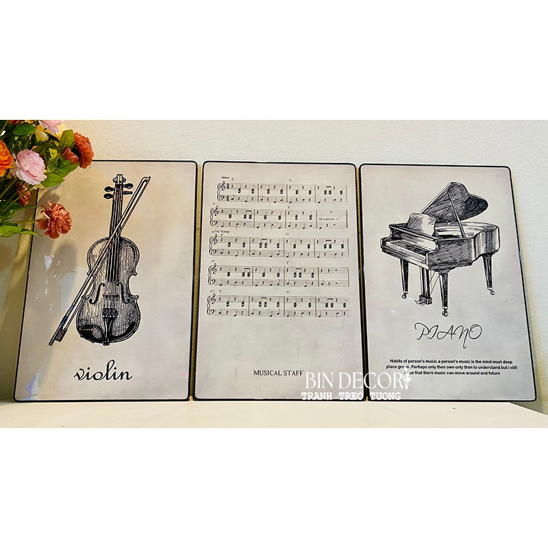 Tranh treo tường âm nhạc 24 - Kích thước của tranh : Kích thước : 25x35cmx3 tấm 30x45cmx3 tấm 40x60cmx3 tấm - Chất liệu : KIM SA - TRÁNG GƯƠNG - CANVAS - Khách hàng