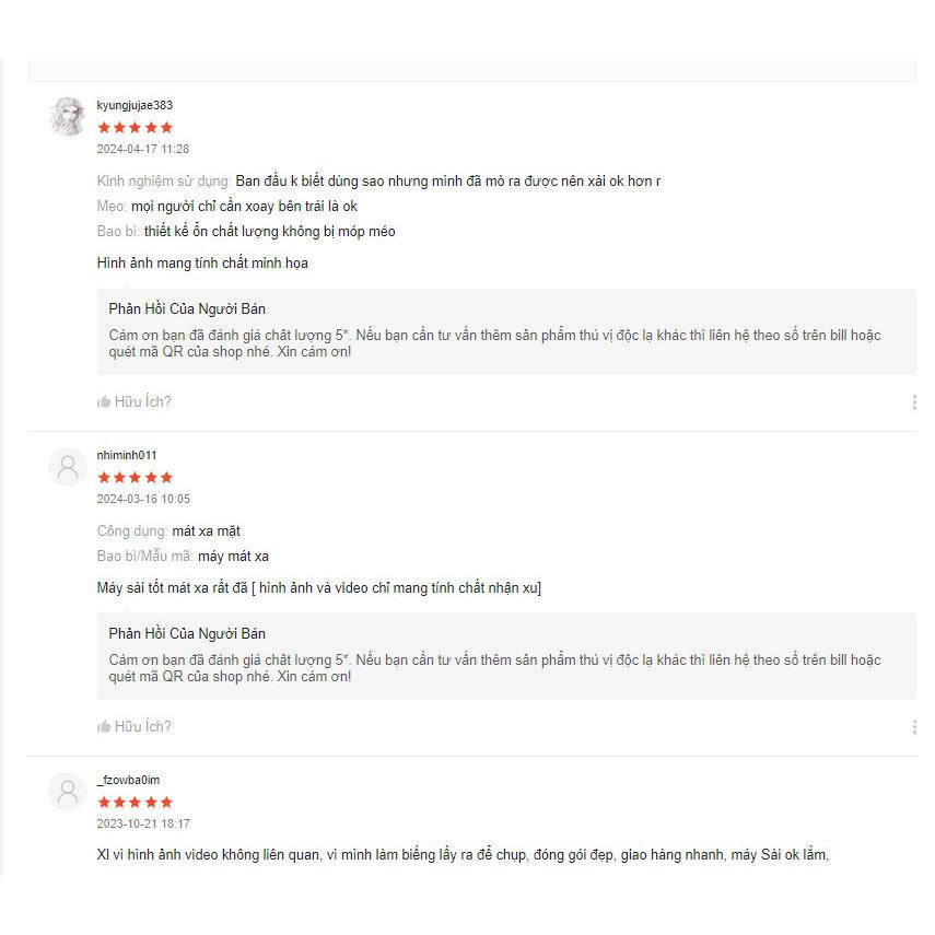 - Sản xuất tại: Trung Quốc Nổi bật: Thiết kế gọn nhẹ, chất liệu nhựa cao cấp, không độc hại. Cách sử dụng đơn giản. Tích hợp đầu massage mini tiện dụng, thích hợp cho từng bộ phận trên cơ thể. Công dụng: Massage mặt, mắt, vai, gáy, đầu…giúp giảm mệt mỏi, làm đẹp da, xóa thâm quầng mắt… Sản phẩm sử dụng pin sạc tiện dụng, an toàn, siêu nhỏ gọn và tiết kiệm năng lượng tối đa. Thiết kế gọn nhẹ, chất liệu nhựa cao cấp, không độc hại. Cách sử dụng đơn giản. Thông số kỹ thuật: Sản Phẩm 1: Kích thước: 11.5 x 2.5 cm – Trọng lượng: 80G. Chất liệu: Nhựa ABS Trơn An Toàn Nguồn điện: Pin Tiểu - Được tặng kèm 1 pin AAA 1,5V. Quy cách đóng gói: Che Tên - Thùng Carton Lịch Sự. Màu sắc: Trắng | Hồng (giao màu ngẫu nhiên) Chế Độ: 1 Chế Độ Sản Phẩm 2: Kích Thước: 11 x 3 (cm) – Nhựa ABS Trơn An Toàn. Nguồn điện: Pin tiểu - Được tặng kèm 1 pin AA 1,5V. Quy cách đóng gói: Che Tên - Thùng Carton Lịch Sự. Chế độ: 1 Chế Độ Màu sắc: Màu Trắng Hướng dẫn sử dụng: Vặn xoay để mở máy – đóng máy theo chế độ on (mở) - off ( đóng) ghi trên thân máy Vặn xoay theo chế độ open để lắp pin Hướng dẫn bảo quản: Sau khi sử dụng, lau sạch đầu máy bằng vải khô để bảo quản thiết bị tốt nhất, và cất giữ cẩn thận cho lần sử dụng tiếp theo. Bảo quản nơi khô ráo thoáng mát, tránh để những nơi có bụi bẩn, nhiệt độ cao, làm ảnh hưởng đến chất lượng cũng như tuổi thọ của sản phẩm. Vệ sinh sạch sẽ sản phẩm trước và sau khi dùng Ghi chú: Bảo hành 12 Tháng HÃY ĐẶT HÀNG NGAY HÔM NAY ĐỂ NHẬN BỘ SẢN PHẨM TUYỆT VỜI TRONG THỜI GIAN SỚM NHẤT NHÉ. CHÚC QUÝ KHÁCH SẼ THẬT HẠNH PHÚC VỚI BỘ SẢN PHẨM NÀY.