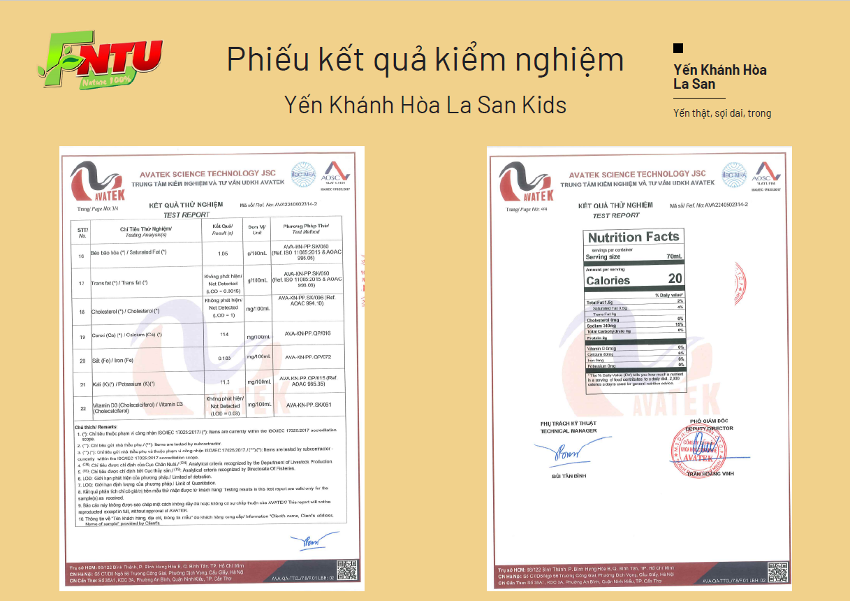 • Chứng nhận bảng Nutrition Facts: Sản phẩm đã được Tổ chức Intertek, Ilac-MRA, Bureau of Accreditation phân tích và cấp chứng nhận, đảm bảo cung cấp đầy đủ và chính xác các thông tin dinh dưỡng cho người tiêu dùng.
