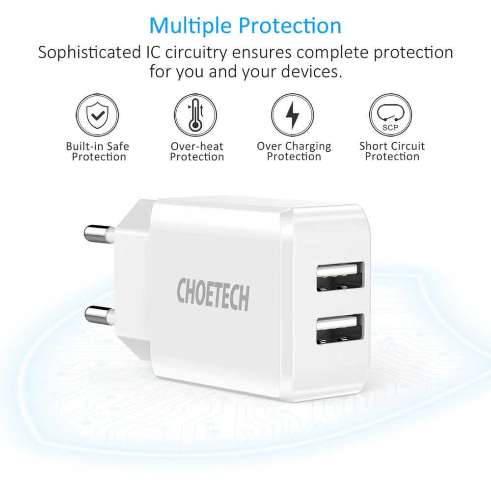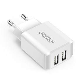 Cóc củ sạc nhanh Dual USB hiệu CHOETECH C0030 cho điện thoại / máy tính bảng hỗ trợ sạc nhanh 5V-2A trang bị chip bảo vệ thông minh, thiết kế nhỏ gọn