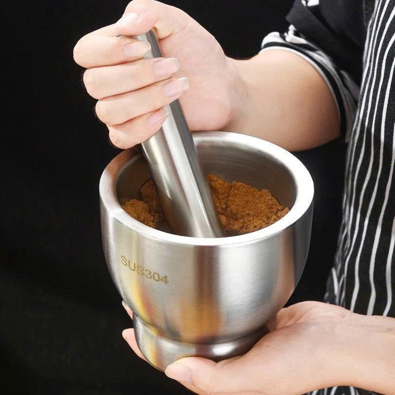Cối Chày Inox 304 Cao Cấp – Giã Tỏi Ớt, Gia Vị, Thực Phẩm Nhanh Chóng, Sạch Sẽ