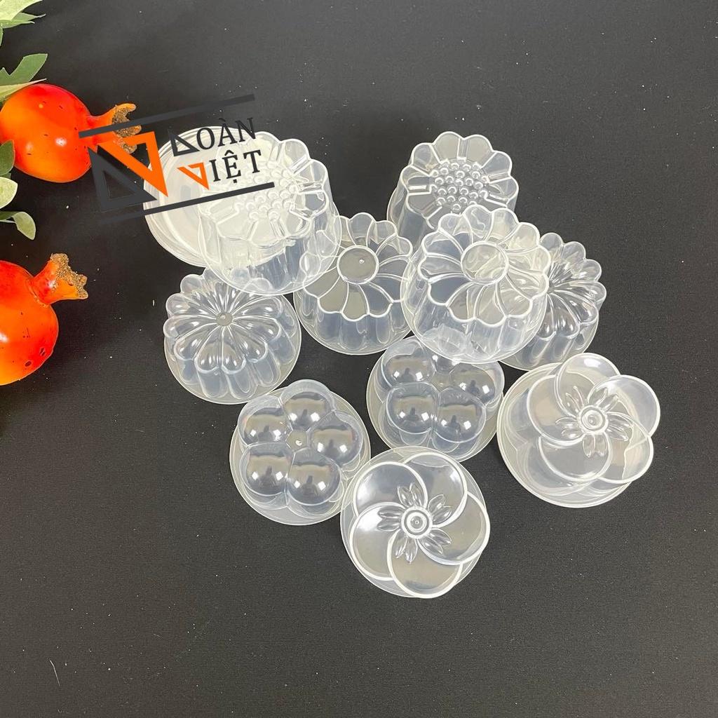 Mua tại TiktokDV- [COMBO 10 KHUÔN] Khuôn làm RAU CÂU, RAU CÂU DỪA, BÁNH IN, BÁNH PHỤC LINH hình hoa - CÓ NẮP, nhựa trong, dày