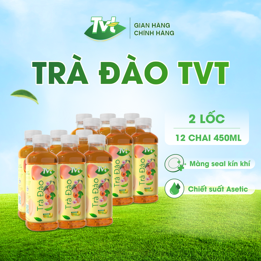 Trà Đào TVT Trà Đào TVT là sự kết hợp hoàn hảo giữa hương vị ngọt ngào của quả đào và những lợi ích tuyệt vời từ trà xanh và trà đen. Được chiết