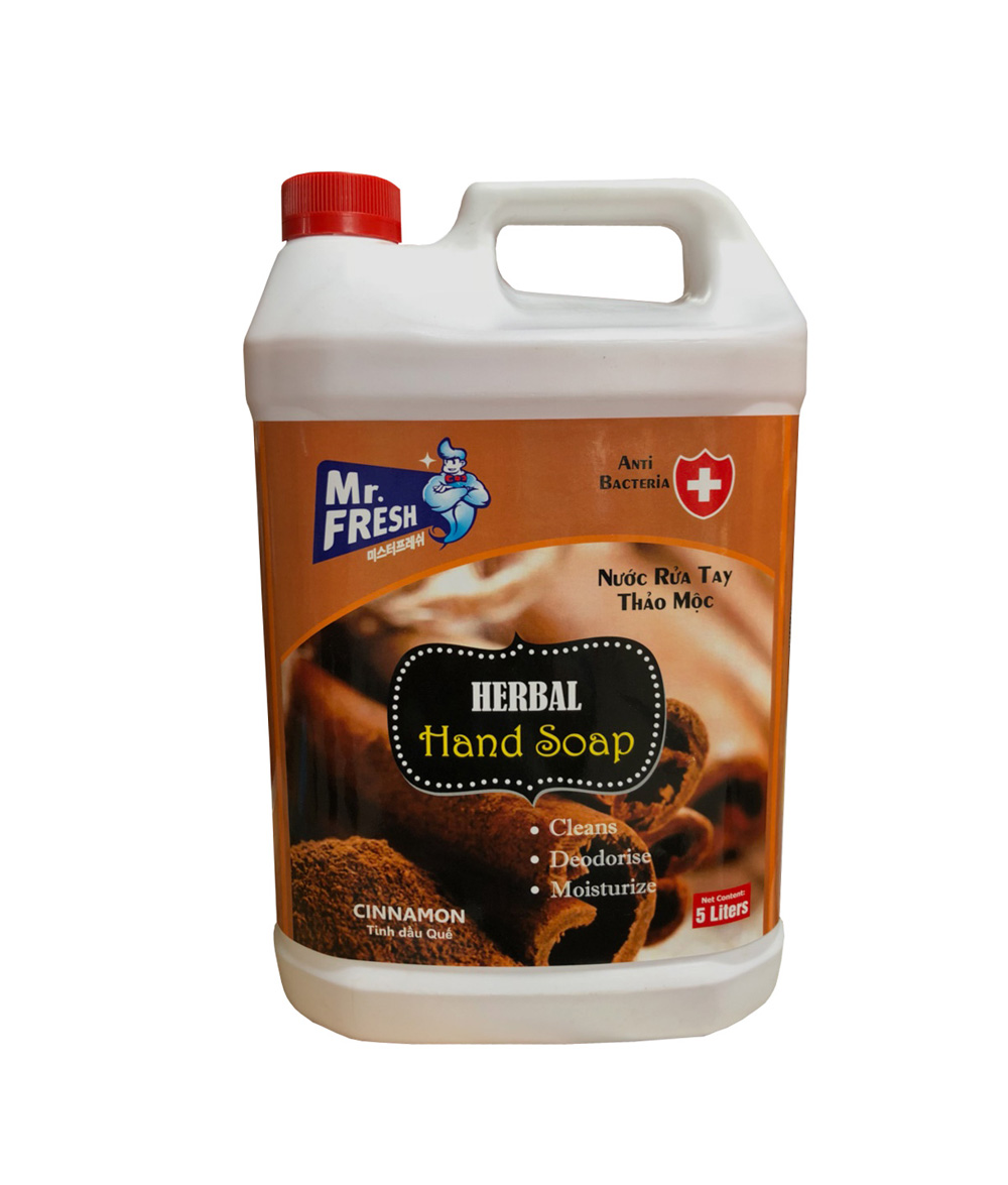 Tên sản phẩm : Nước rửa tay Premium Hand Soap Mr Fresh 5lCông dụng : Làm sạch tay, kháng khuẩn, khử mùi, giúp đôi tay mềm mại mà vẫn sạch khuẩn.Thành Phần : Linear, Benzene Sulfonate, Sodium laureth sulfate, nước , hương hoa quả..Mùi hương : Hương Quế Hạn sử dụng : 3 năm kể từ ngày sản xuất in bao bì