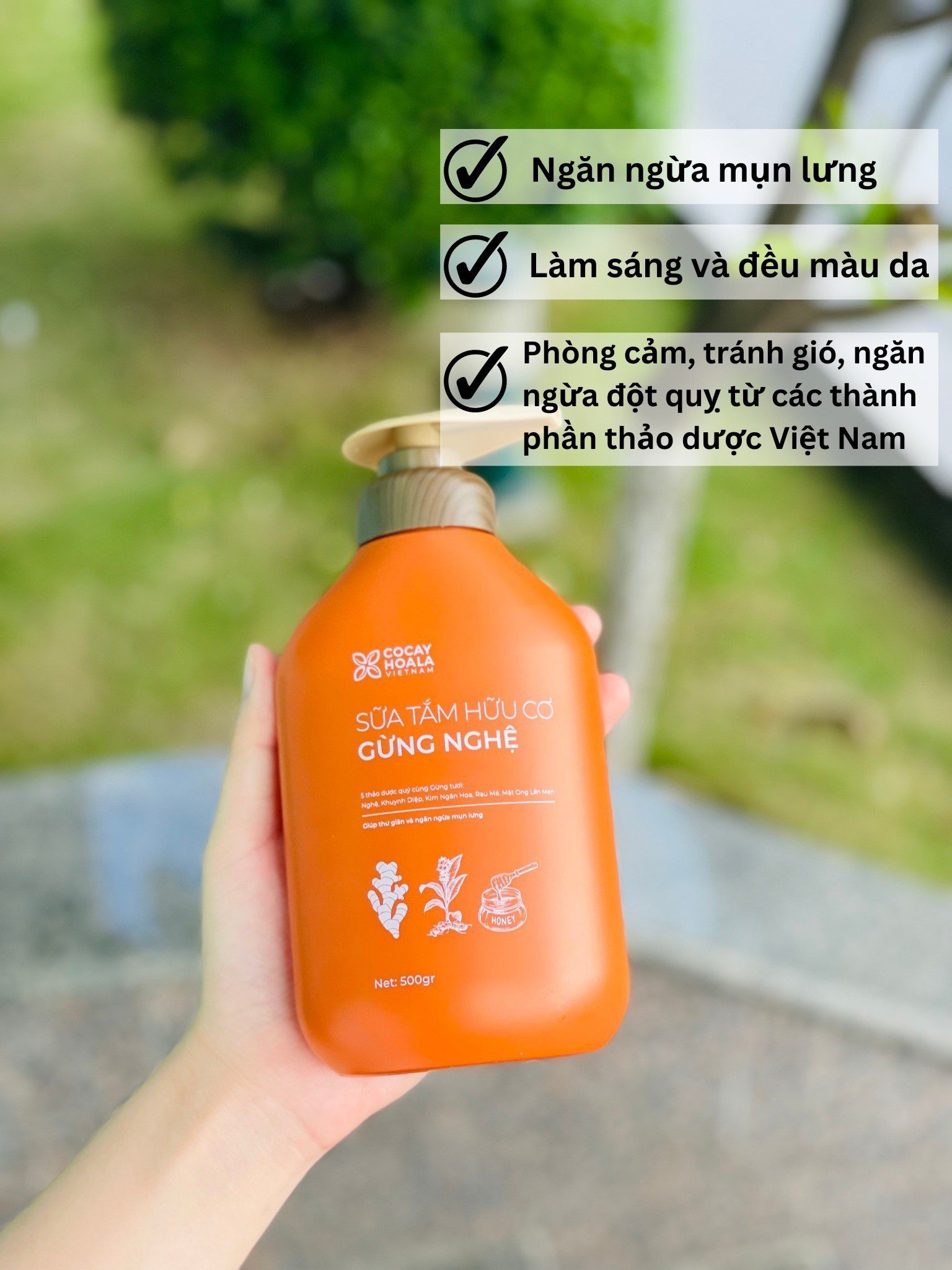 Mua tại TiktokTOP 10 THƯƠNG HIỆU UY TÍN HÀNG ĐẦU CHÂU Á Cùng sữa tắm hữu cơ gừng nghệ chan hòa mái ấm gia đình Sữa tắm thảo dược Gừng Nghệ là sự kết hợp giữa tinh hoa y học cổ truyền và công nghệ bào chế hiện đại giúp tối ưu hóa công dụng của từ 9 loại thảo dược quý. Nếu như tinh dầu gừng có khả năng phòng chống cảm lạnh, trúng gió, giữ ấm cơ thể thì chiết xuất nghệ giúp làm sáng da, chống oxy hóa và trẻ hóa làn da Đặc biệt với những mẹ bầu sau sinh bị rạn da, thâm sạm da vùng bụng, đùi. Những tinh chất thiên nhiên trong sản phẩm sẽ hỗ trợ phục hồi làn da sau quá trình mang thai, nuôi dưỡng da từ sâu bên trong, giúp da trắng đều và đẹp tự nhiên. ️CÔNG DỤNG