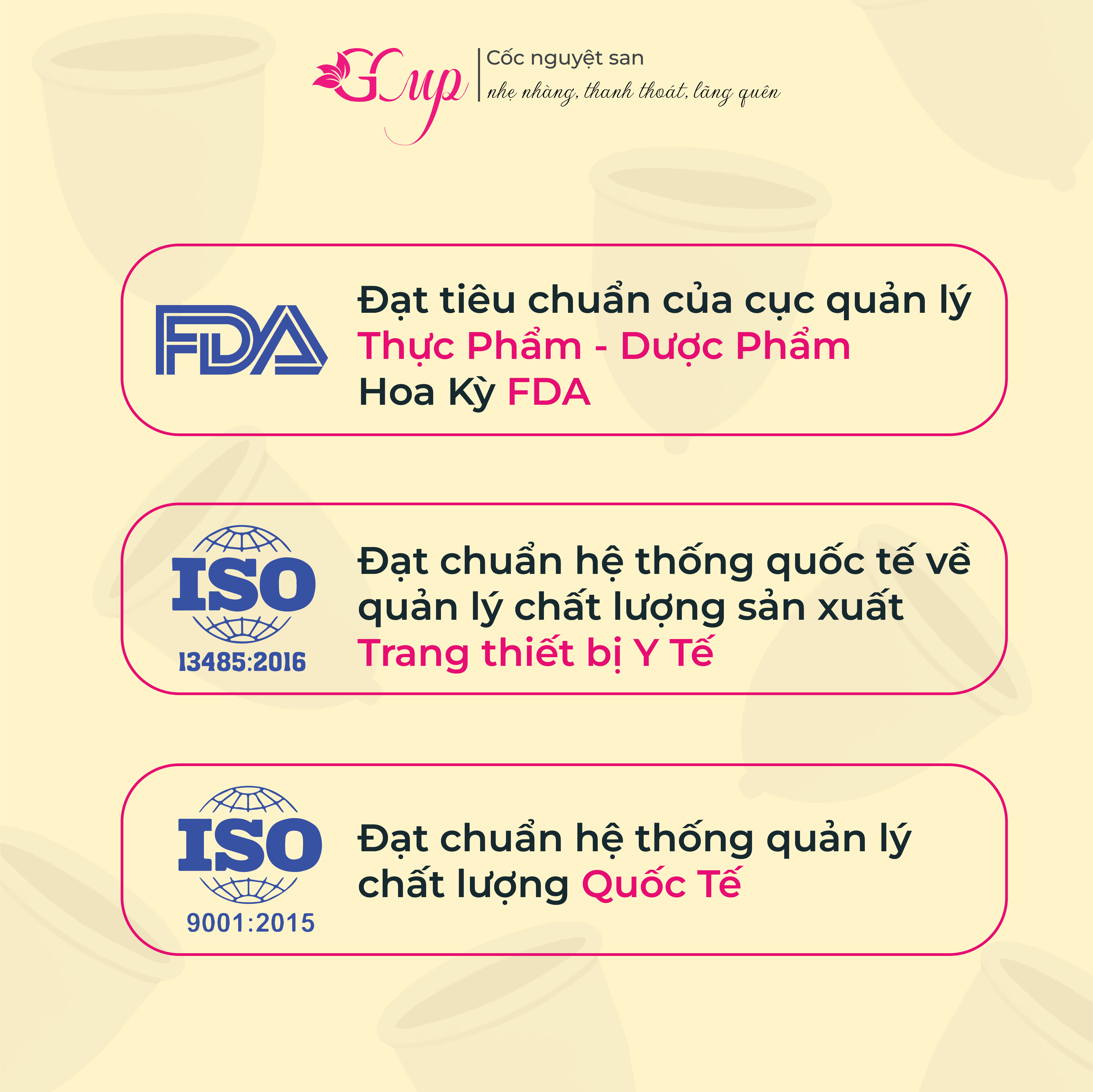 ✨Combo 2 Cốc Nguyệt San, túi vải, cốc tiệt trùng GCup - Silicone y tế, đạt tiêu chuẩn kép ISO 13485 Quốc Tế và FDA Hoa Kỳ